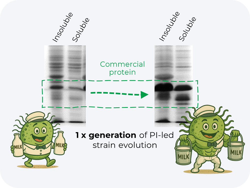 By applying the PI toolbox, we create new paths through evolutionary solutions space to build evolved production microbes with over 10x improvements in protein titre, independent of the identity of the target commercial protein.